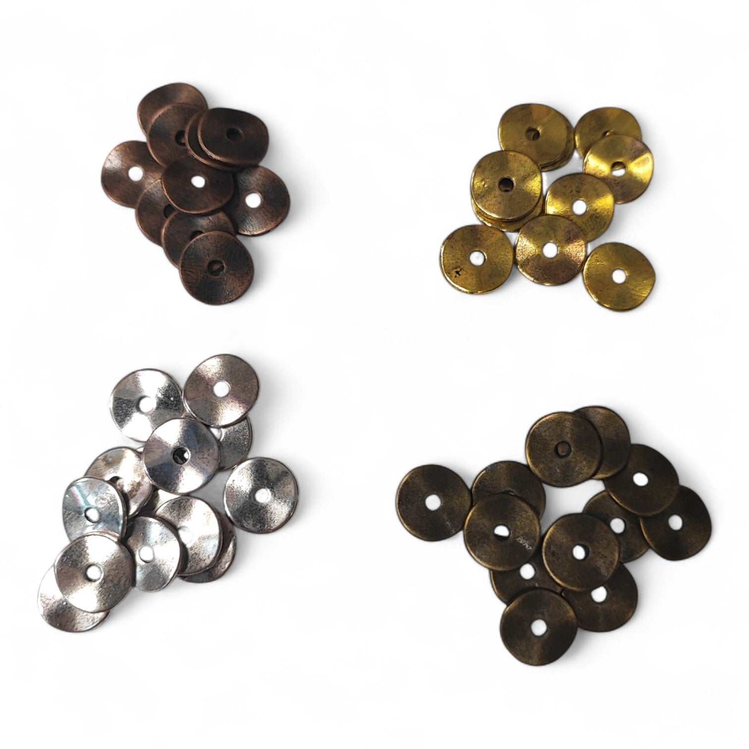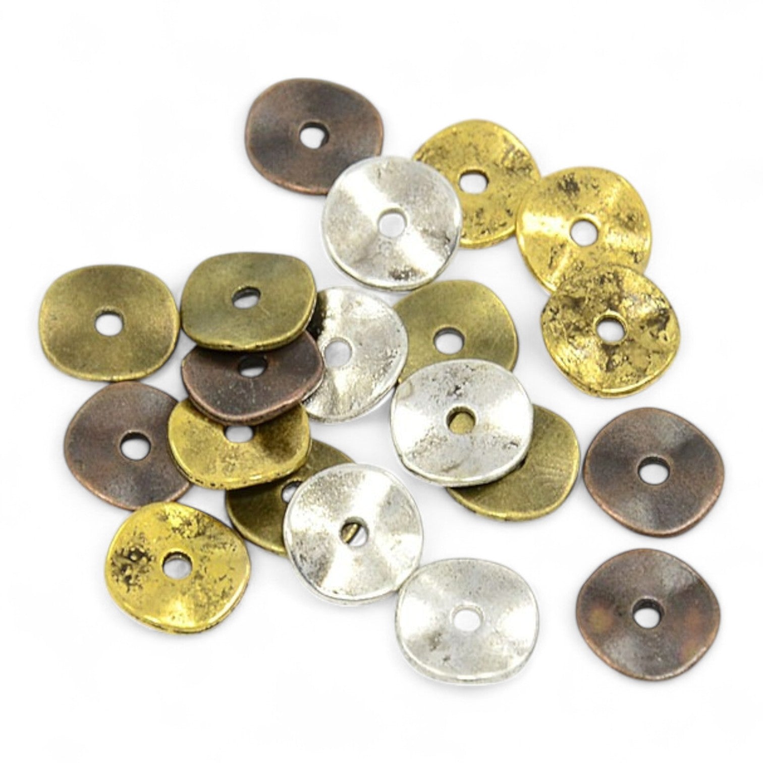 Perles plates et ondulées en alliage tibétain, parfaites comme intercalaires pour rythmer vos créations. Apportent du mouvement et du style à vos bijoux.
