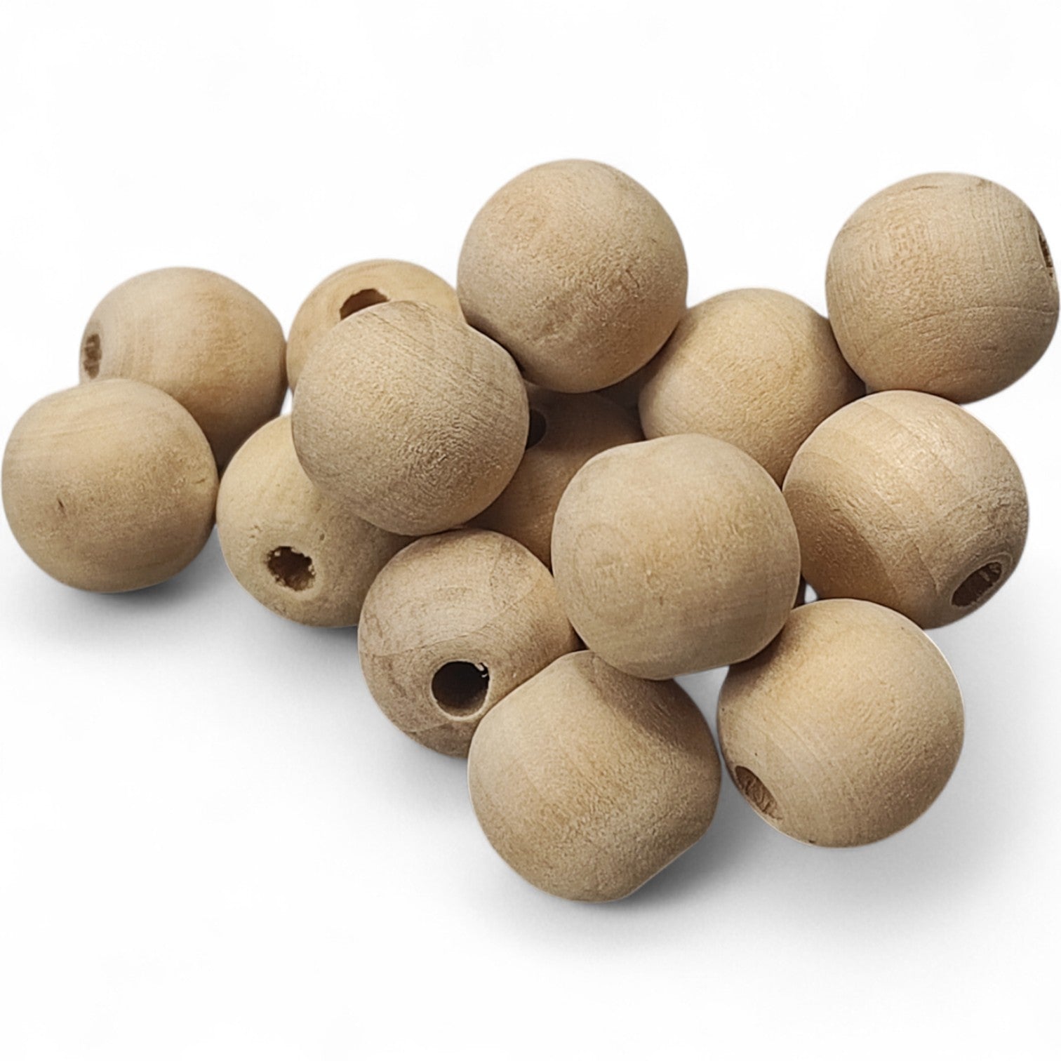 🌿 Perles Rondes en Bois Brut – 16 mm (lot de 5)