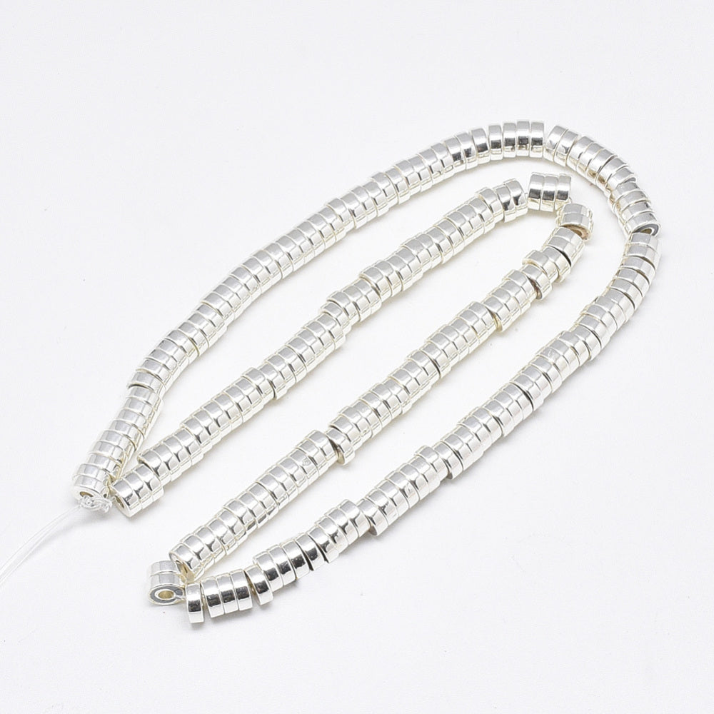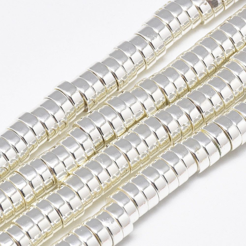 x50 Perles Heishi en Hématite Synthétique – Plaqué Argent – 6 mm